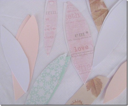 First you take your pretty papers. I had some lightish looking papers – they weren’t pure white – but I knew I’d be giving them a spritz of white paint anyway so they needn’t be pure white.