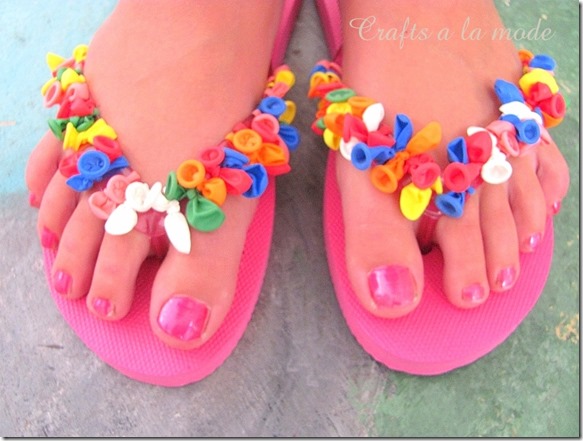 She embellished her Aero flip flops with balloons also in a little different way... she just put some here and there...she single knotted but they can also be double knotted.
