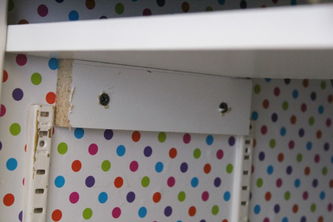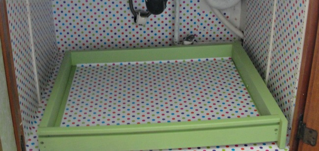 The first thing I did was cover the entire insides of the cabinet with a pretty and bright contact paper.