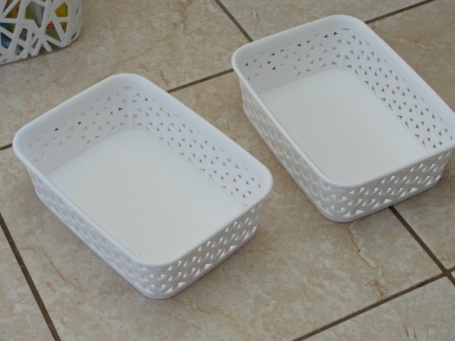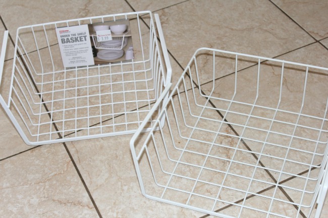 I bought these little plastic baskets at Target to put the taller bottles in.