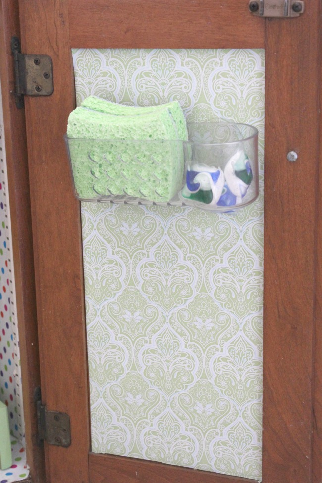 At this point, the under the sink cupboard is looking so nice, cheerful, clean, and organized.